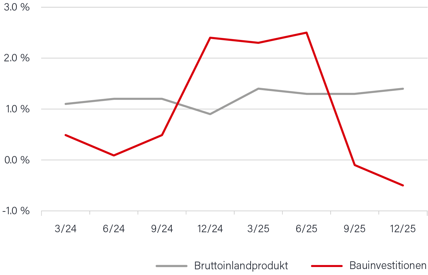Wachstumsprognosen Bauinvestitionen und BIP 2024–2025