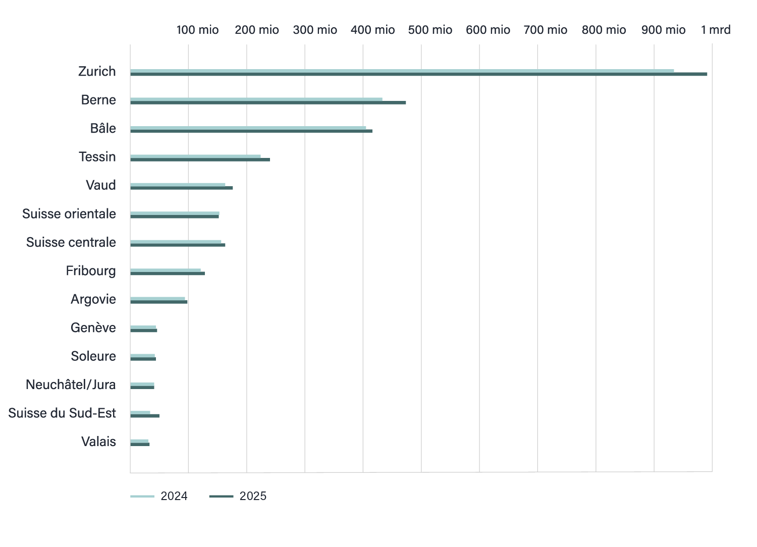 Chiffre d’affaires brut des entreprises membres, par région (en millions de CHF)